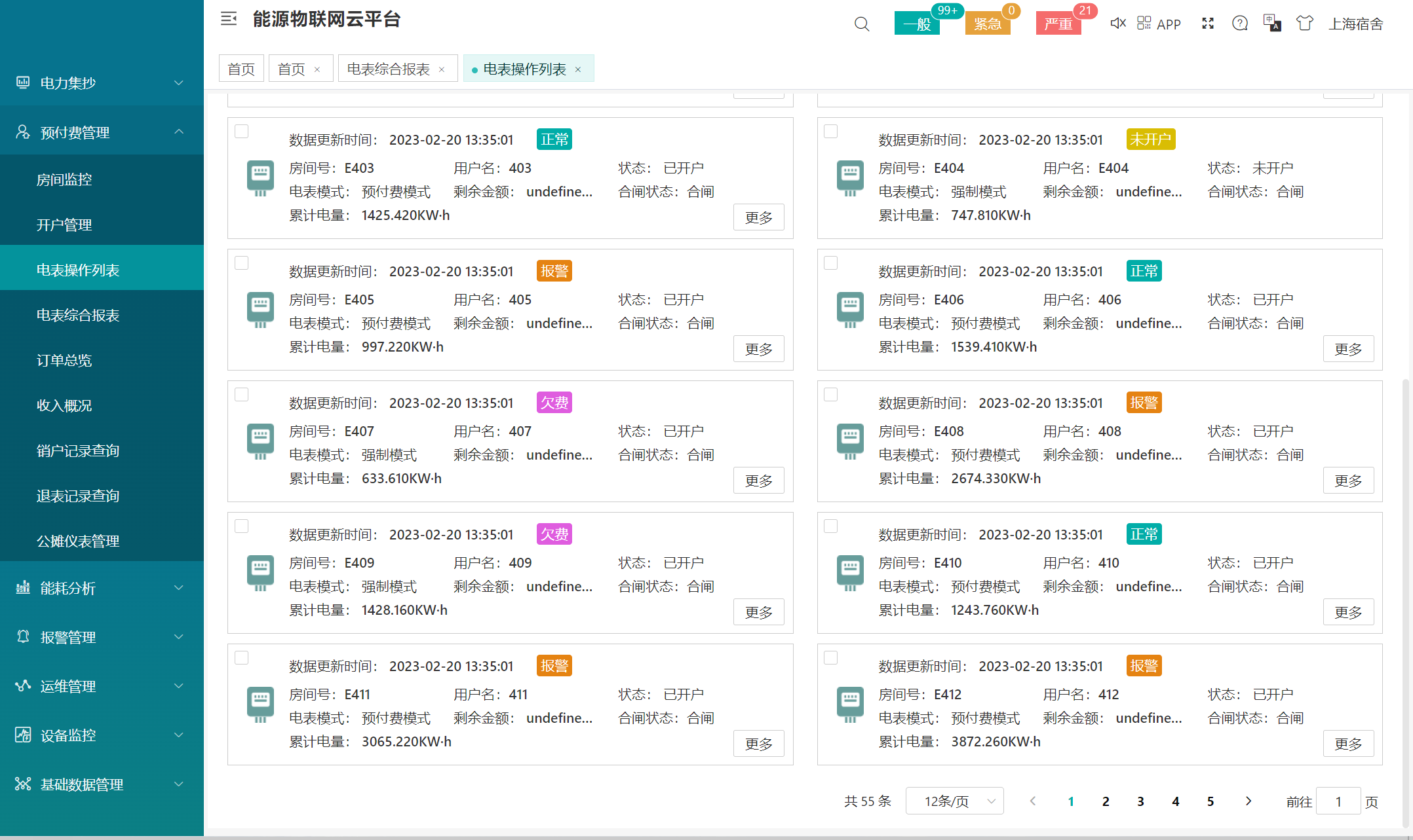 損耗公攤:通過解讀電價政策,物業日常運營、線路損耗、公用設備用電等費用可以加收在物業費中。在平臺中可以對每戶設置房間或者商鋪項目基礎信息,作為平臺物業費扣費依據,例如使用面積,物業費單價,扣費日期,優惠金額等,保障轉供電企業電費收支平衡。