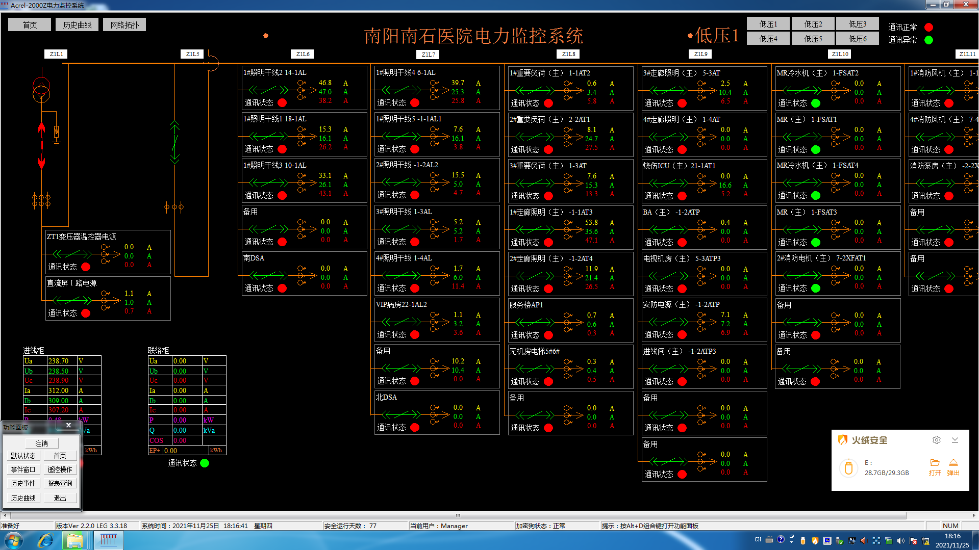 系統(tǒng)提供簡單、易用、良好的用戶使用界面。采用全中文界面,CAD圖形顯示低壓配電系統(tǒng)電氣一次主接線圖,顯示配電系統(tǒng)設(shè)備狀態(tài)及相應(yīng)實(shí)時(shí)運(yùn)行參數(shù),畫面定時(shí)輪巡切換;畫面實(shí)時(shí)動(dòng)態(tài)刷新;模擬量顯示;開關(guān)量顯示;連續(xù)記錄顯示等。