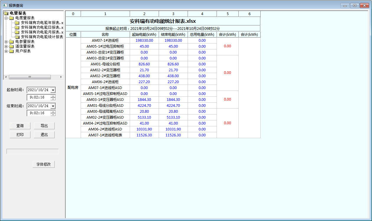 3)運(yùn)行報(bào)表: 查詢(xún)各回路或設(shè)備指定時(shí)間的運(yùn)行參數(shù),報(bào)表中顯示電參量信息應(yīng)包括:各相電流、三相電壓、總功率因數(shù)、總有功功率、總無(wú)功功率、正向有功電能等,報(bào)表格式有日?qǐng)?bào)表、月報(bào)表、年報(bào)表等。