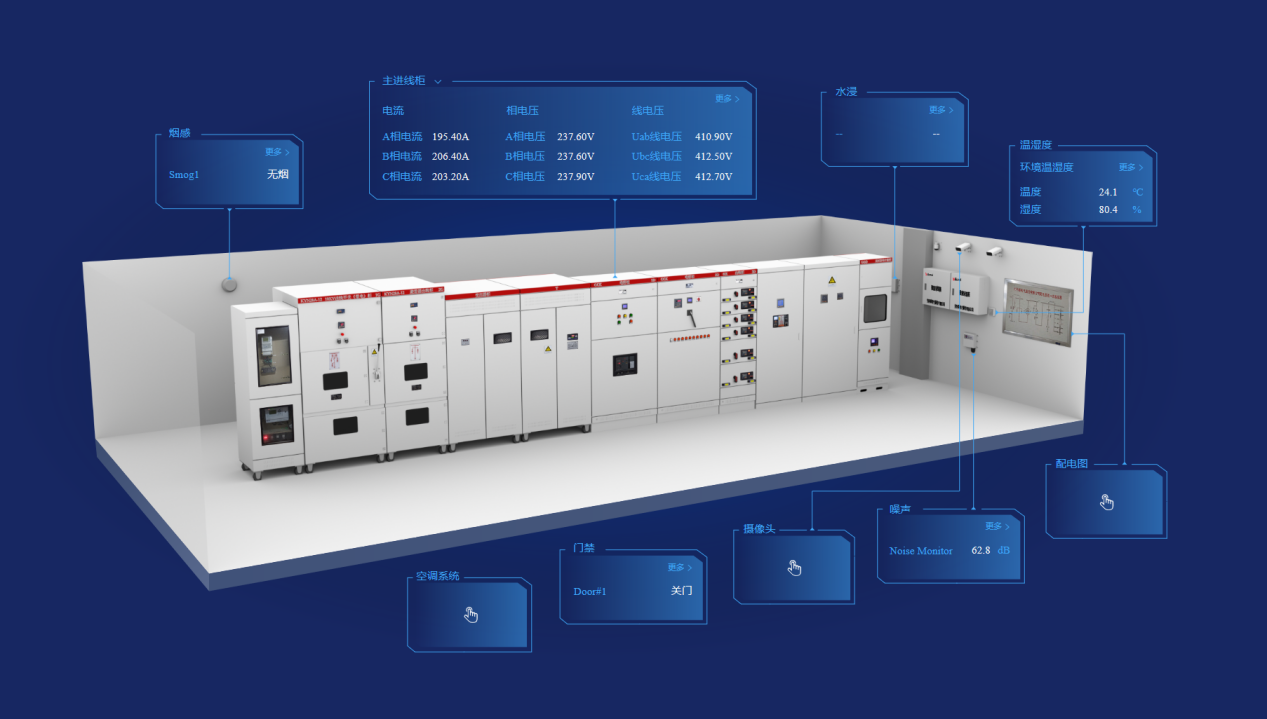 AcrelEMS-UT能效管理系統針對配電系統的電氣安全隱患配置相應的電氣火災傳感器、溫度傳感器,消防設備電源傳感器、防火門狀態傳感器,接入消防疏散照明以及指示燈具的狀態實時顯示,并且對UPS的蓄電池溫度、內阻進行實時監視,發生異常時通過聲光、短信、APP及時預警。