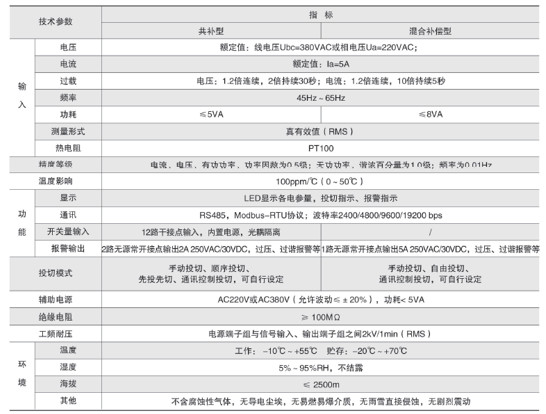 該產品具備RS485通訊接口,其所采樣得到的電壓、電流、頻率、有功功率、無功功率、諧波含量、功率因數、溫度可通過通訊接口傳送到其它外部設備。產品具備過電壓、欠電壓、欠流鎖定、斷相、過畸變、溫度保護功能。