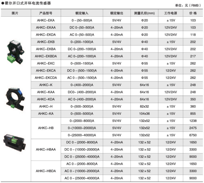 ● 開口式開環霍爾電流傳感器