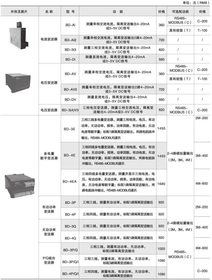 BD系列電力變送器是一種將電網中的電流、電壓、頻率、功率、功率因數等電參量,經隔離變送成線性的直流模擬信號或數字信號的裝置。