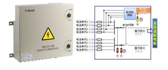 在一個大型的光伏發電系統中,需要數量龐大的光伏電池組件進行串并組合達到需要的電壓電流值,以使發電效率達到最高。APV系列智能光伏匯流箱主要作用就是對光伏電池陣列的輸入進行一級匯流,用于減少光電池陣列接入到逆變器的連線,優化系統結構,提高可靠性和可維護性,APV系列智能光伏匯流箱在提供匯流防雷功能的同時,還可提供光電池電流 測量、監測光電池陣列中電池板運行狀態、電池電壓、匯流總功率、支路功率、匯流箱防雷器狀態采集、直流斷路器狀態采集、繼電器接點輸出、帶有風速、溫度、輻照儀等傳感器接口的功能供客戶選擇,本裝置標配有RS485接口,可以把測量和采集到的電量數據和設備狀態上傳到監控系統。