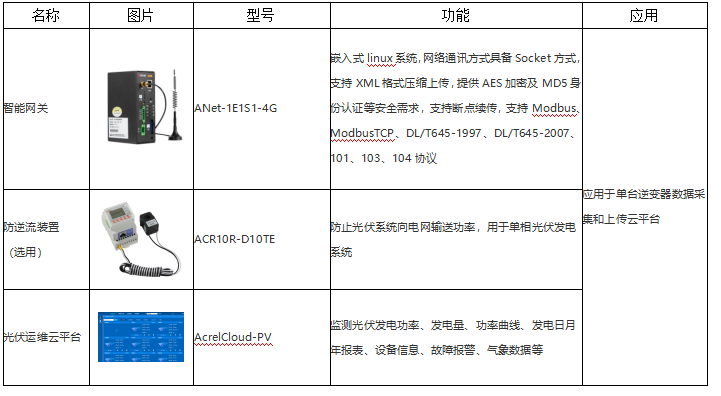 這種并網模式單體光伏電站規模適中,可通過云平臺采用光伏發電數據和儲能系統運行數據,安科瑞在這類光伏電站提供的解決方案包括以下方面: