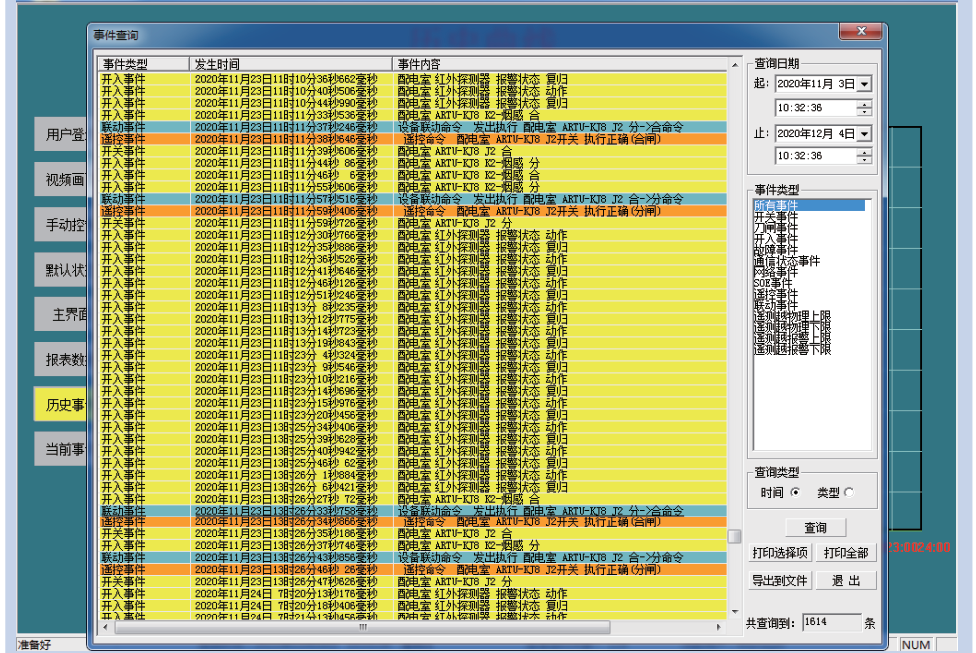 進入“報警及事件查看”界面可以查看系統運行到當前所有形成的報警或事件。首先根據左上角的下拉框可以分別查看當前事件、歷史事件和事件統計。