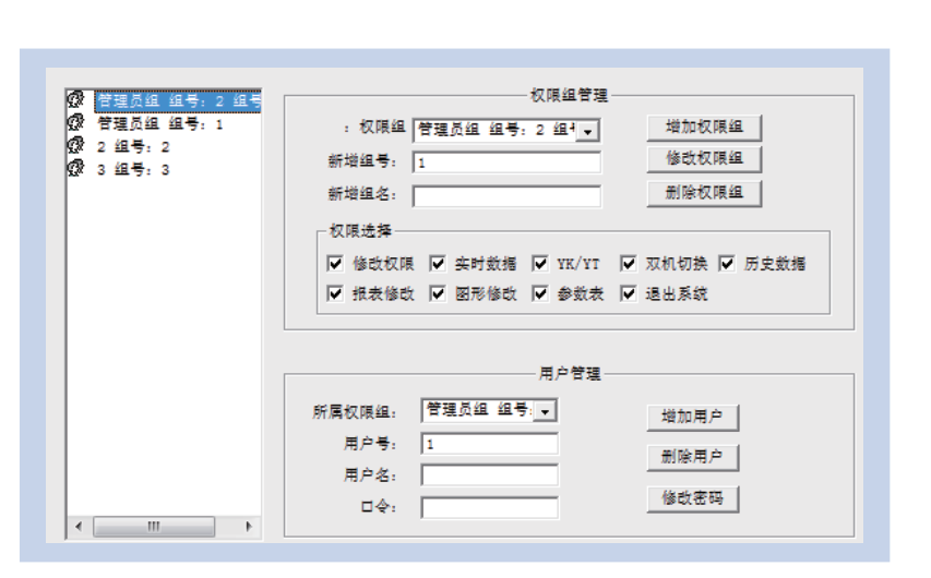 為保障系統安全穩定運行,設置了用戶權限管理功能。通過用戶權限管理能夠防止未經授權的操作(如遙控的操作,數據庫修改等)。可以定義不同級別用戶的登錄名、密碼及操作權限,為系統運行維護、管理提供可靠的安全保障。