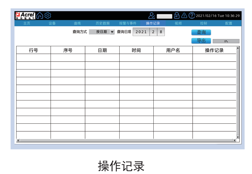 進入“操作記錄”界面可以查看不同用戶到目前為止的操作及時間。并且可以根據所選擇的不同查詢方式進行不同方式的查詢功能。