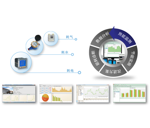 系統可以根據分類能耗的支路名稱查詢用能情況,顯示當日和當月的用能峰值(電能對應最大需量值)。顯示當日用能、當月用能、當年用能與昨日同期用能、上月同期用能、上年同期用能的比較情況。以條形顯示過去48小時、31天、12個月、3年的能耗情況。右上角顯示過去15分鐘曲線(電表顯示功率曲線,流量表顯示流速曲線),同時顯示當前值與15分鐘內的最大值和最小值。