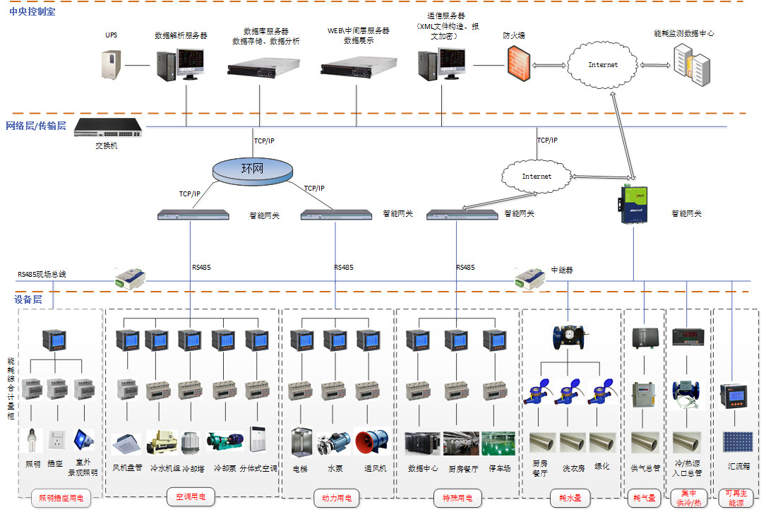 系統依據建筑物能源消耗的分布情況進行能耗計量點的選取和設置,使得能耗監測系統可以覆蓋整個建筑物。系統使用者可通過相關界面調取該建筑物各能耗節點的能耗統計報表,減少用能的“跑、冒、滴、漏”和計量誤差。
