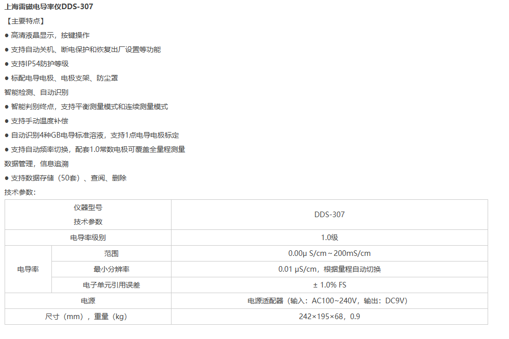 上海雷磁電導(dǎo)率儀DDS-307介紹